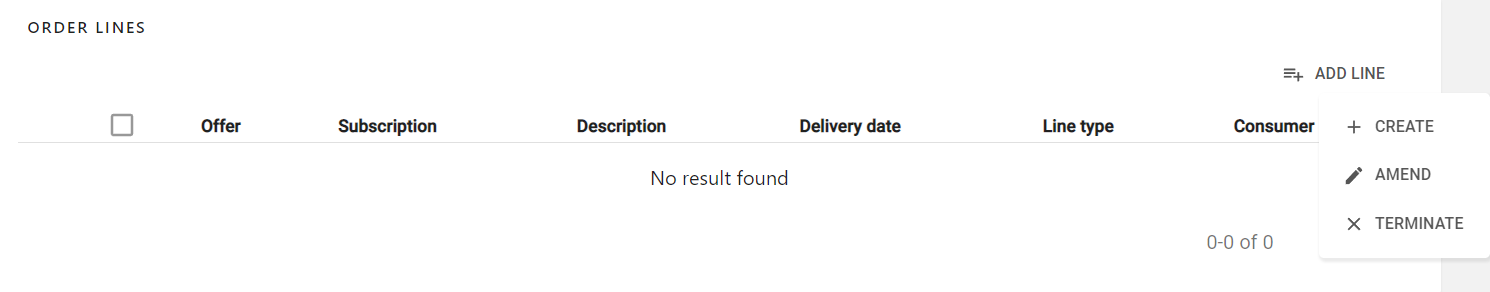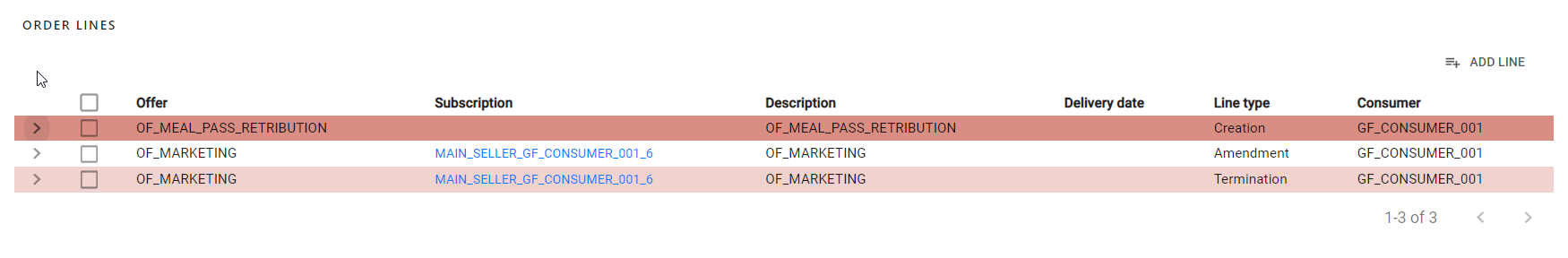 Lines are independent entities linked to the customer associated with your order. Once created, each line can be modified until the order is validated.