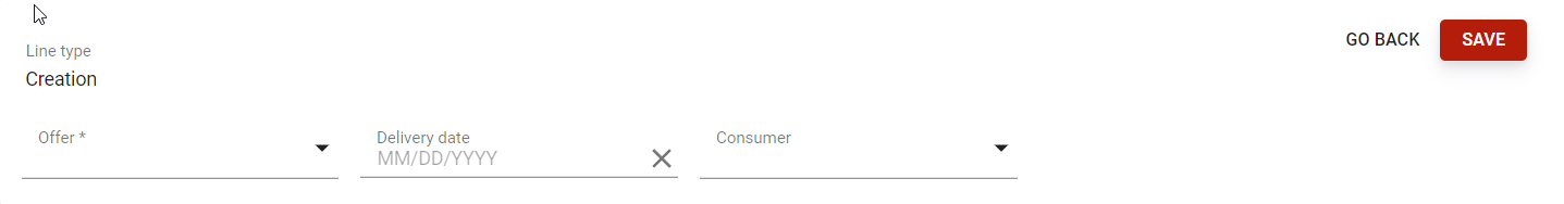 The creation lines allows you to plan a subscription for your client. When selecting a creation line, you are asked to select an offer from your catalog and decide of the delivery date and the consumer that will use this service.