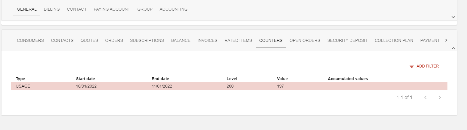 You can attach counters to almost the whole hierarchy in Opencell. However, in the 360° view are only listed counters from Billing Account.