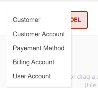 By clicking on the "Download template" button, a list is displayed containing the types of models available for download, by clicking on a choice, the model is downloaded in csv format.