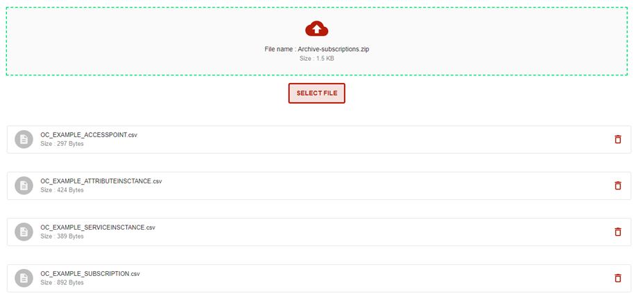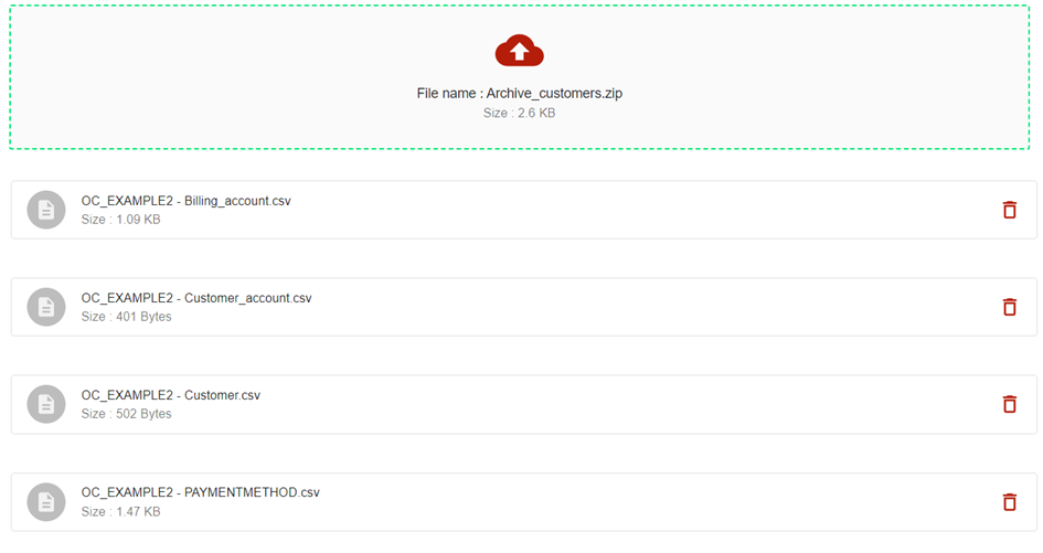 Uploading a zip file: Displaying the names of the csv files contained in the zip, with the possibility of deleting files (keep the files to be imported)