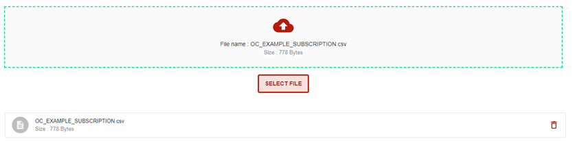 The user can do the upload either by selecting a file from the machine or by doing a drag and drop.